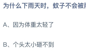 蚂蚁庄园:为什么下雨天时,蚊子不会被雨滴砸死?(蚂蚁庄园为什么没有胖揍)