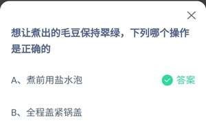 蚂蚁庄园:想让煮出的毛豆保持翠绿下列哪个操作是正确的?(蚂蚁庄园想让煮出来的毛豆翠绿哪一种做法正确)