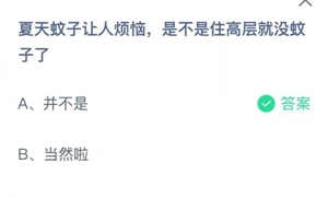 蚂蚁庄园:夏天蚊子让人烦恼是不是住高层就没蚊子了?(以下哪种动物不仅夏天蚂蚁庄园还有)