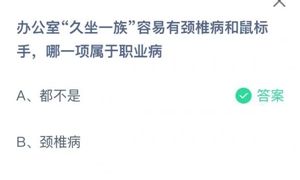 蚂蚁庄园:办公室久坐一族容易有颈椎病和鼠标手哪一项属于职业病?(年纪不大蚂蚁庄园)