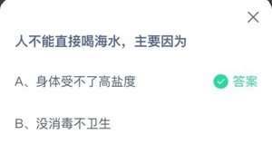 蚂蚁庄园:人不能直接喝海水主要因为?(蚂蚁庄园不能关闭)